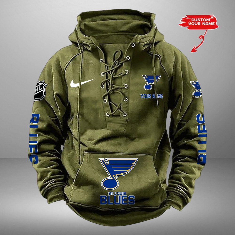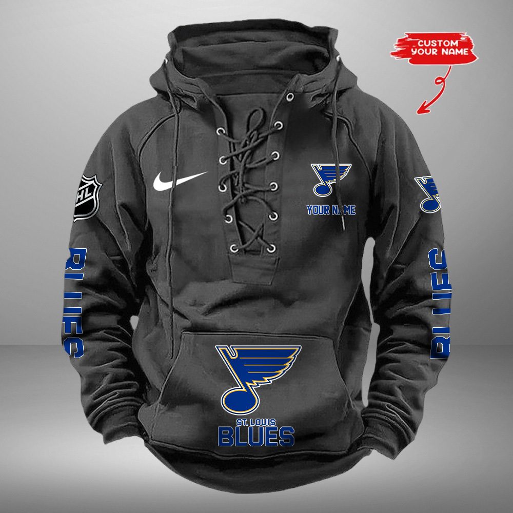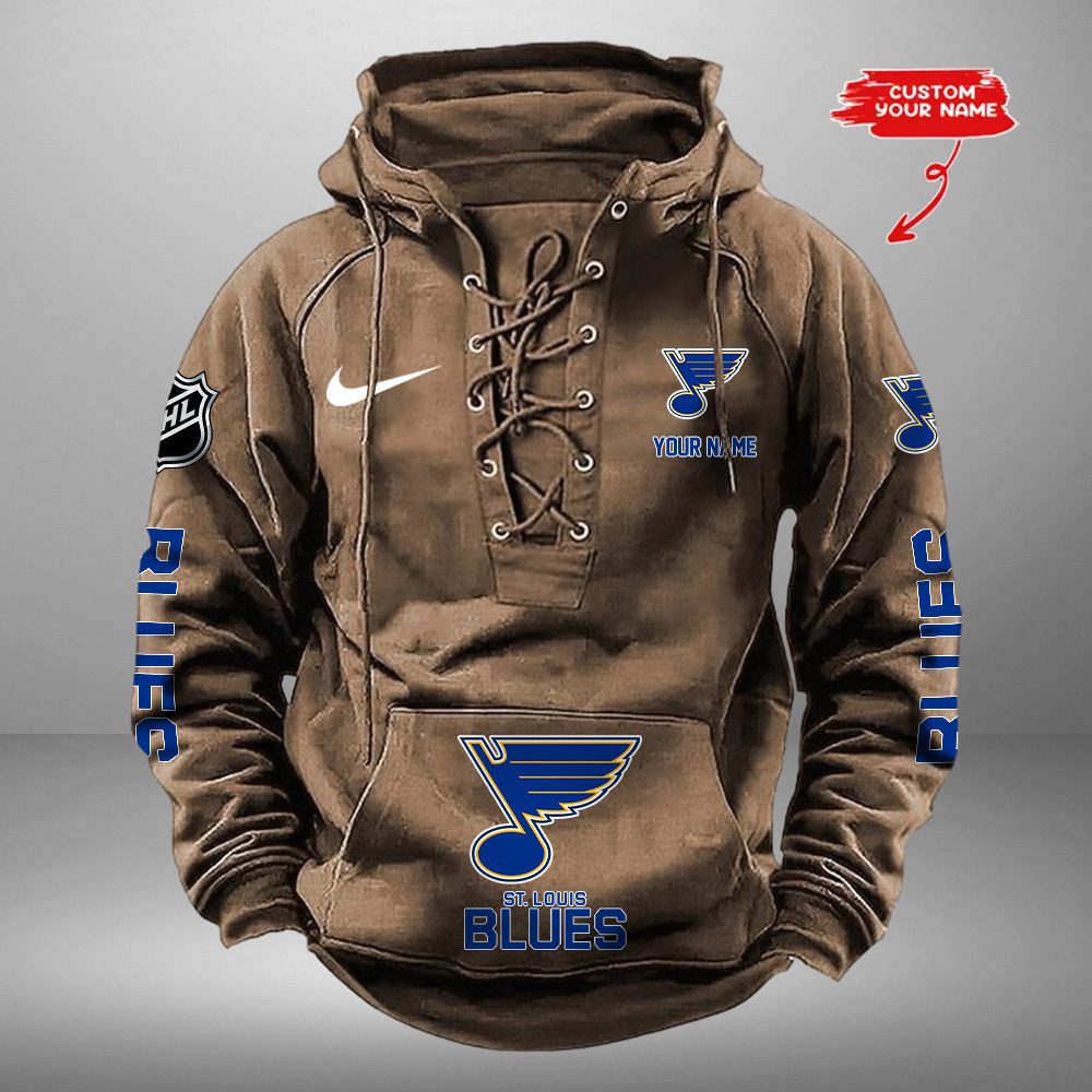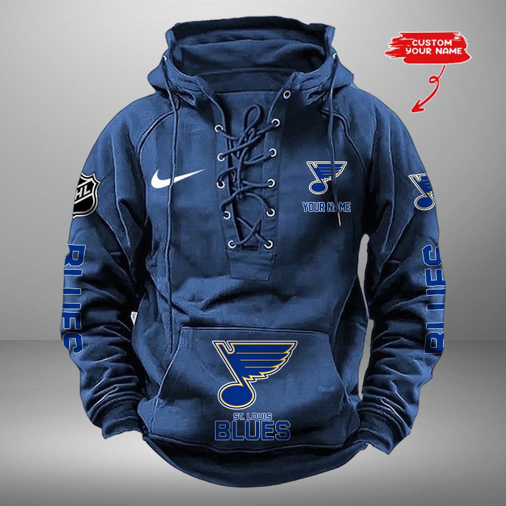 St Louis Blues NHL Swoosh Hooded Lace Up Retro Vintage Hoodie Custom Name