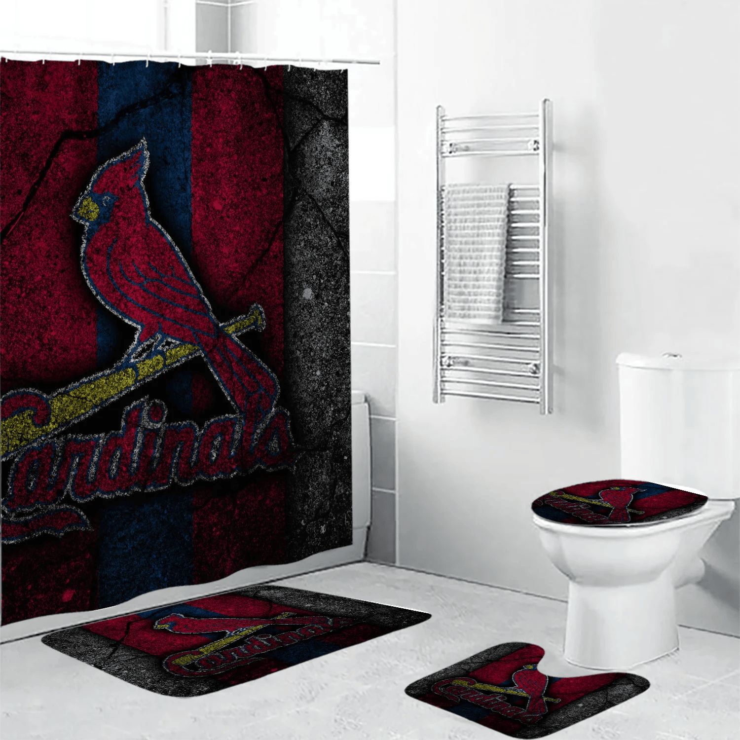 St. Louis Cardinals Logo Stone Background 3D Bathroom Sets With Waterproof Shower Curtains And Bath Mat Sets BRS2714