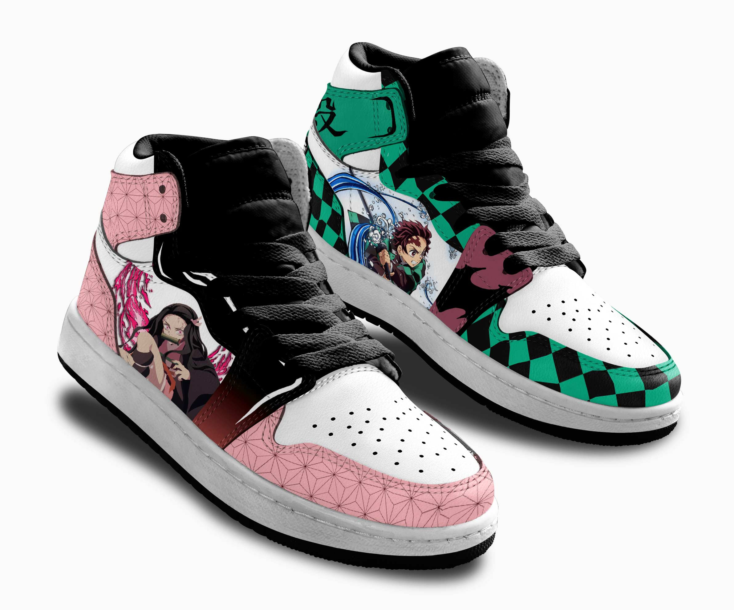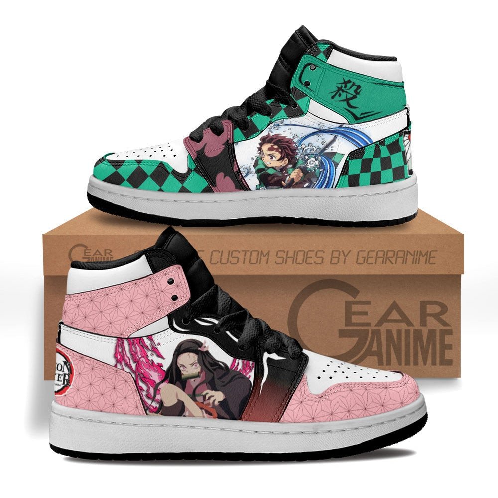 Tanjiro and Nezuko Kids Sneakers Custom Anime Demon Slayer Kids Jordan 1 Shoes
