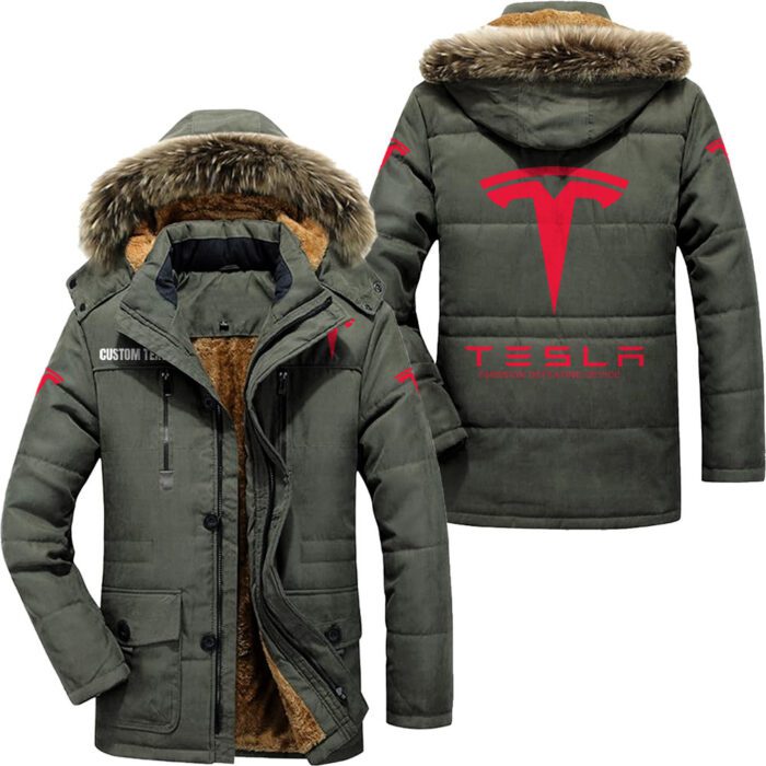 Tesla Motors Hooded Fleece Parka Jacket Fleece Coat Winter Customize Name PJF1327