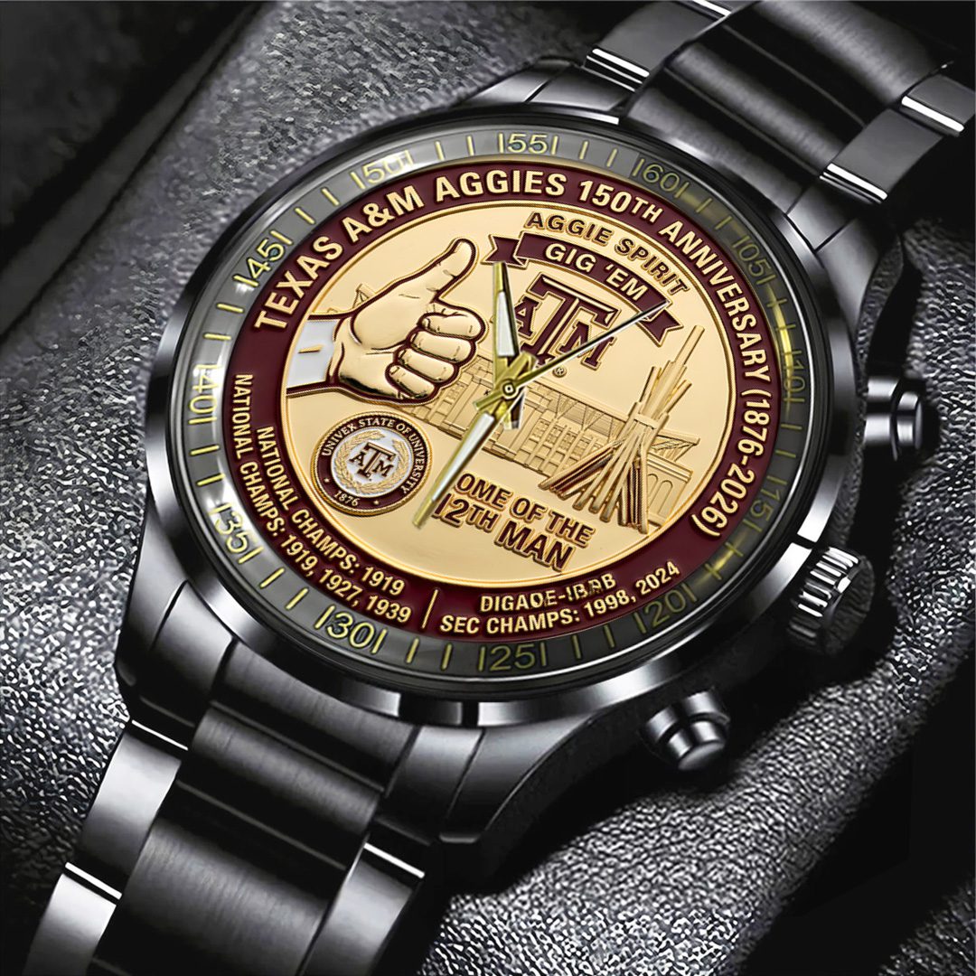 Texas A&M Aggies Football 150th Anniversary 2026 Black Stainless Steel Watch SPM1048