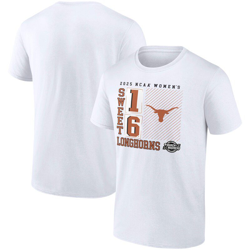 Texas Longhorns 2025 NCAA Women’s Basketball Tournament March Madness Sweet 16 No Look Pass T-Shirt – White