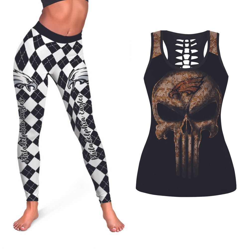The Punisher Skull Philadelphia Eagles NFL American Football Tank Top And Legging Set Gift For Philadelphia Fans