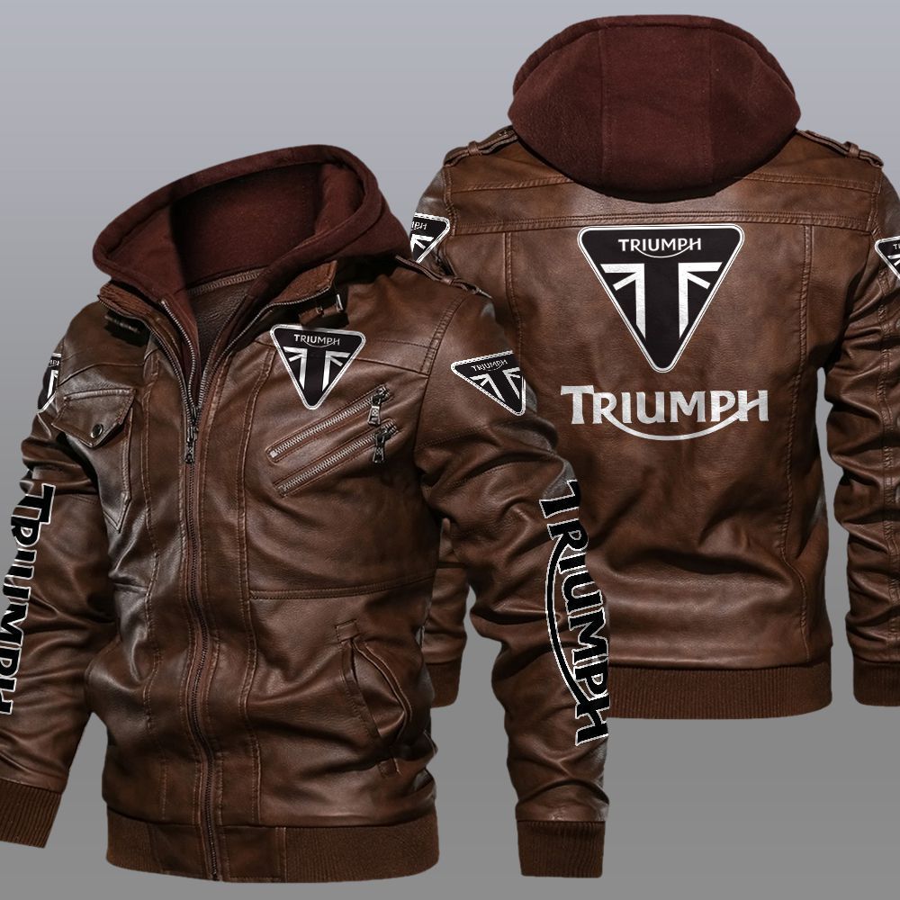 - Two solid color: black/brown. Black leather jacket features grey hooded and brown leather jacket features brown hooded.