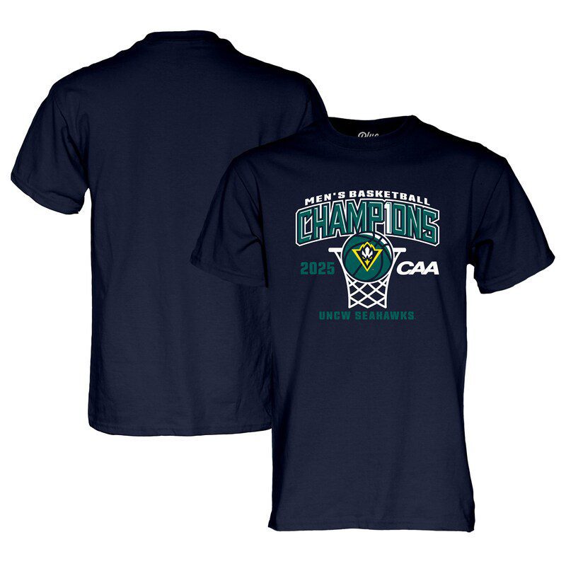 UNC Wilmington Seahawks Blue 84 Unisex 2025 CAA Men’s Basketball Conference Tournament Champions T-Shirt – Navy