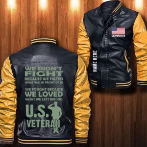 - This leather bomber jacket with high collar, full-zip front, and side seam pockets works as a finishing touch to a stylish cool-weather look