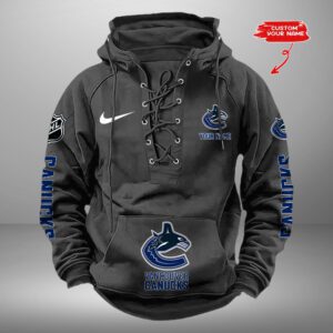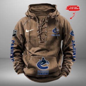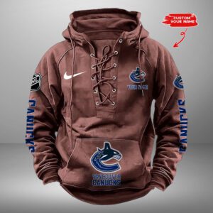 Vancouver Canucks NHL Swoosh Hooded Lace Up Retro Vintage Hoodie Custom Name