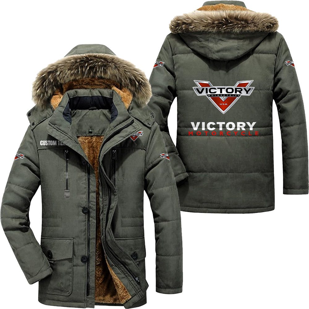 Victory Motorcycles Hooded Fleece Parka Jacket Fleece Coat Winter Customize Name PJF1358