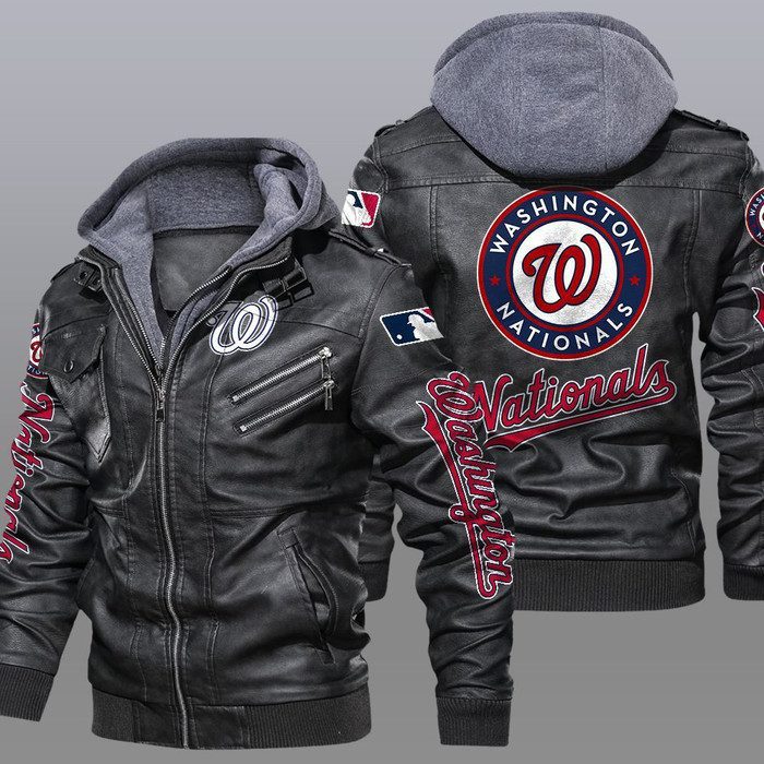 Washington Nationals Black Brown Leather Jacket LIZ173