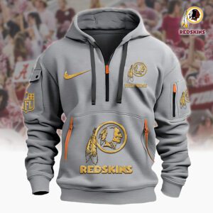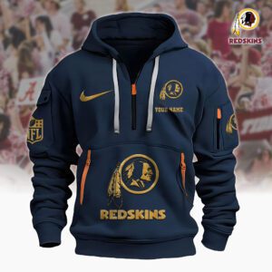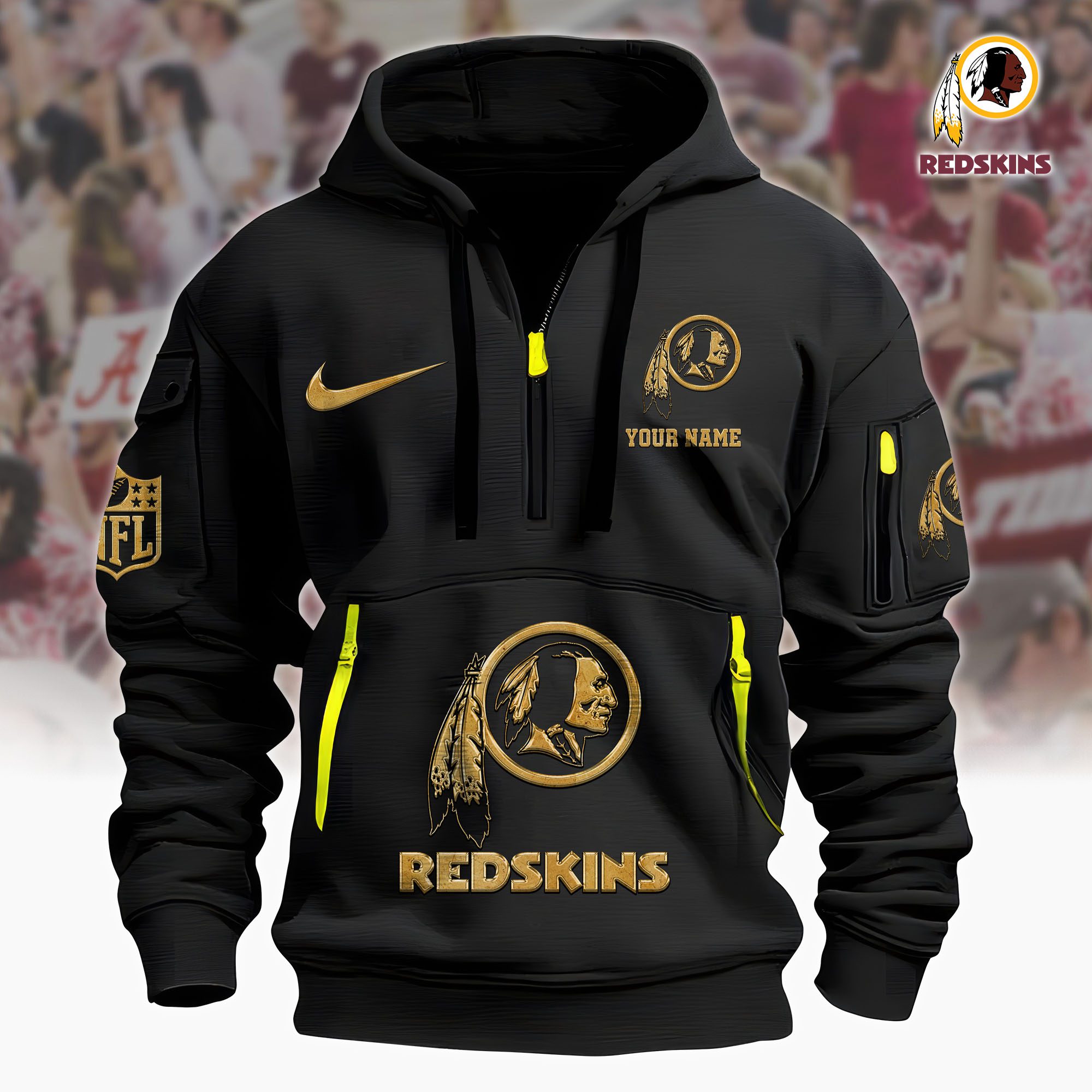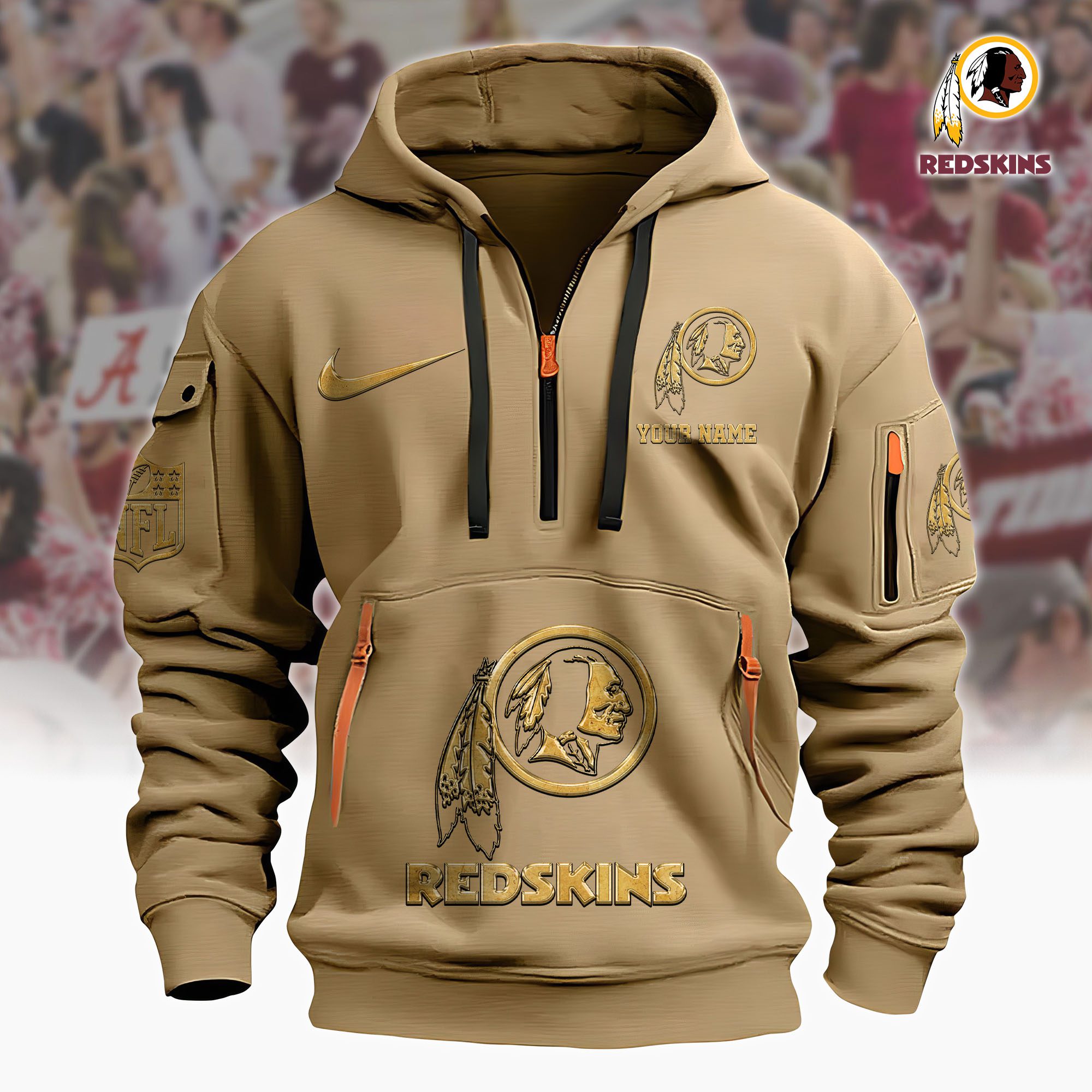 Washington Redskins NFL Custom Your Name Metal Logo Quarter Hoodie Zip WQH5188