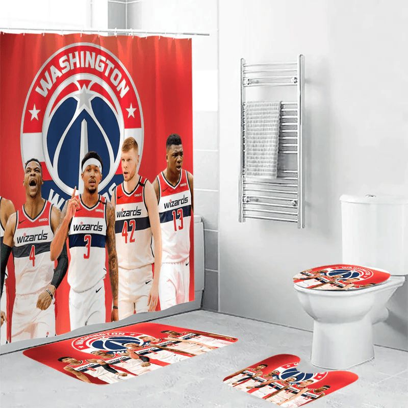 Washington Wizards All Players2 Waterproof Shower Curtain Non-Slip Toilet Lid Cover Bath Mat Bathroom Set BRS2249