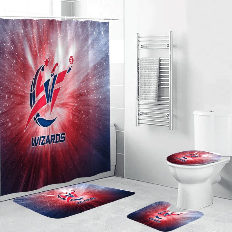 Washington Wizards Blue Red Galaxy Waterproof Shower Curtain Non-Slip Toilet Lid Cover Bath Mat Bathroom Set BRS2198