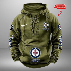 Winnipeg Jets NHL Swoosh Hooded Lace Up Retro Vintage Hoodie Custom Name