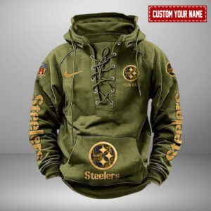 Pittsburgh Steelers NFL Personalized Swoosh Hooded Lace Up Hoodie Vintage Retro Hoodie