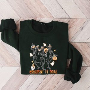 Cute Skull Creep It Real Halloween Sweatshirt Spooky Season Fall Shirt Retro