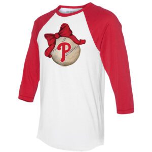 Philadelphia Phillies Baseball Bow 3/4 Red Sleeve Raglan Shirt