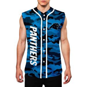 Carolina Panthers Camo Sleeveless Baseball Jersey Tank Top Custom Name BBTJ1070