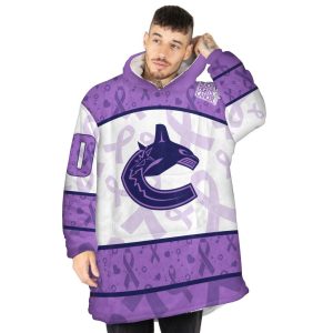 Custom NHL Vancouver Canucks Lavender Hockey Fights Cancer Oodie Blanket Hoodie Wearable Blanket