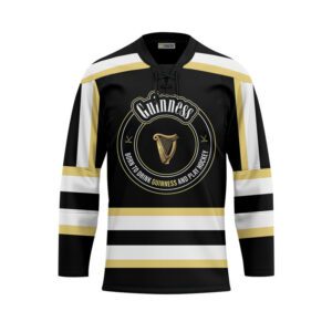 Personalized Black Born To Drink Guinness Beer and Play Lace Hockey Jersey
