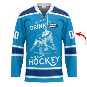 Personalized Born To Drink Budweiser and Play Lace Hockey Jersey