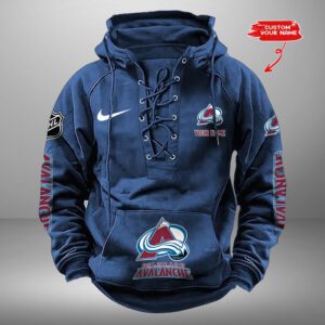 Colorado Avalanche NHL Swoosh Hooded Lace Up Retro Vintage Hoodie Custom Name