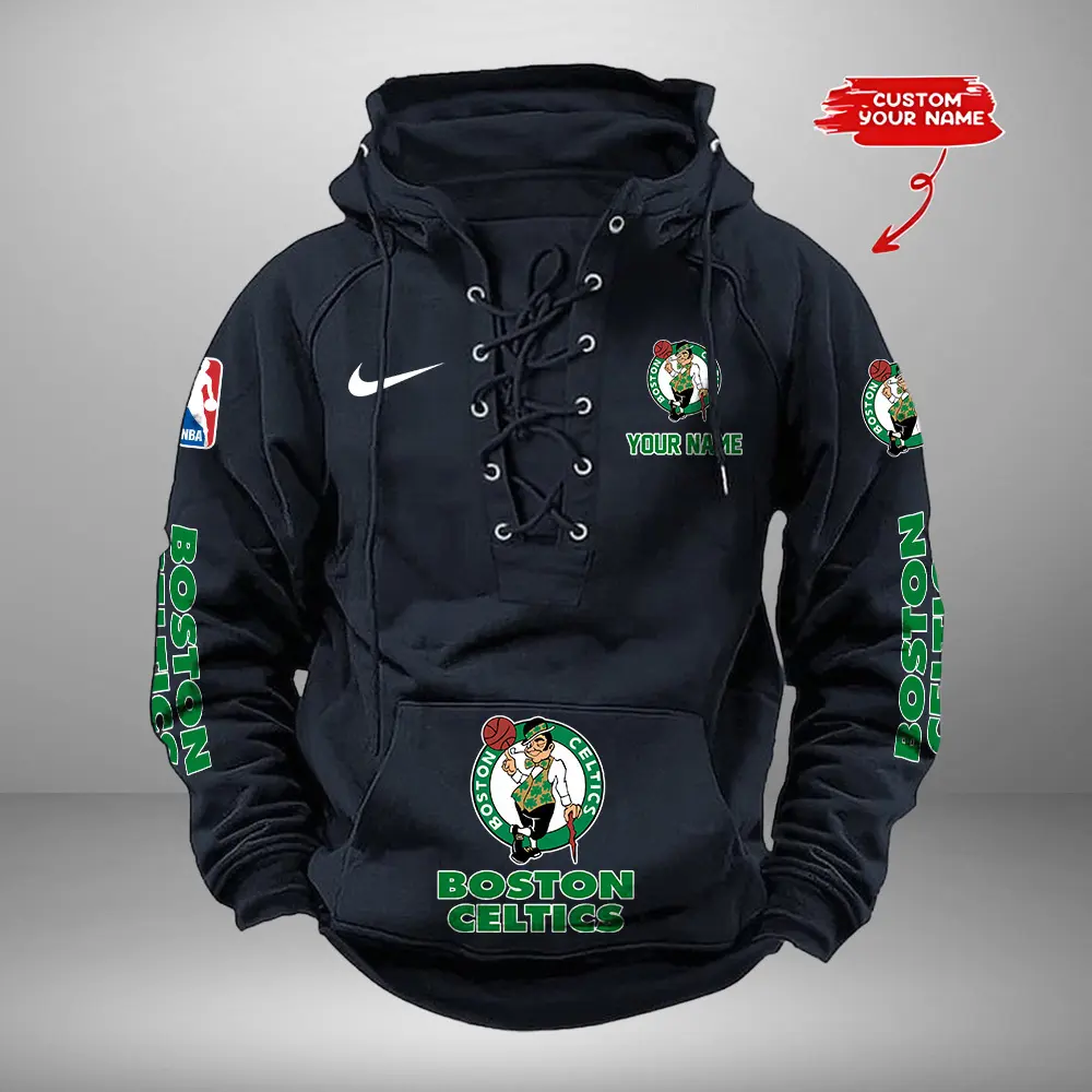 Boston Celtics Personalized NBA Swoosh Lace Up Hoodie Vintage Retro Hoodie