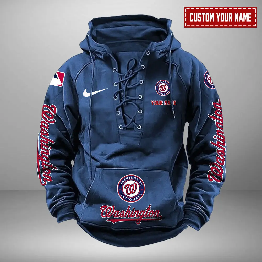 Washington Nationals Personalized MLB Swoosh Lace Up Hoodie Vintage Retro Hoodie