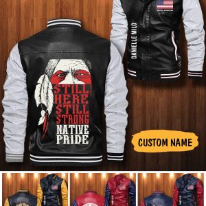 Native American Custom Personalized Leather Bomber Jacket CTLBJ140