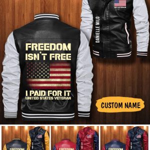 American Flag Freedom Isn’t Free I Paid For It Custom Personalized Leather Bomber Jacket CTLBJ104