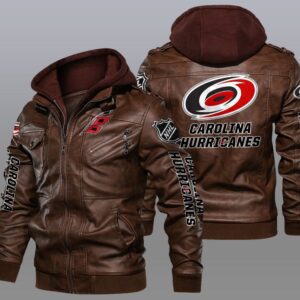 Carolina Hurricanes Black Brown Leather Jacket LIZ216