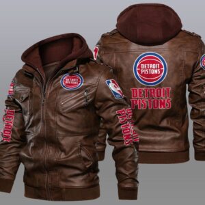 Detroit Pistons Black Brown Leather Jacket LIZ222