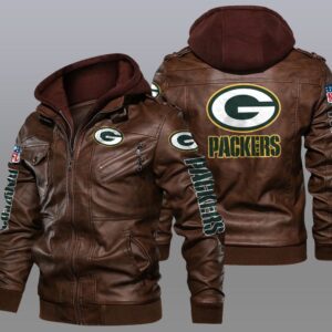 Green Bay Packers Black Brown Leather Jacket LIZ115