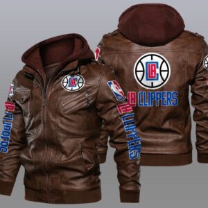 Los Angeles Clippers Black Brown Leather Jacket LIZ181