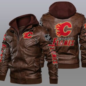 Calgary Flames Black Brown Leather Jacket LIZ178