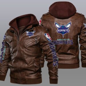Charlotte Hornets Black Brown Leather Jacket LIZ172