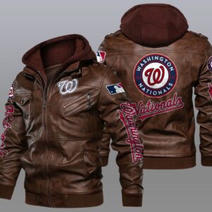Washington Nationals Black Brown Leather Jacket LIZ173
