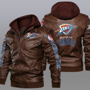 Oklahoma City Thunder Black Brown Leather Jacket LIZ127