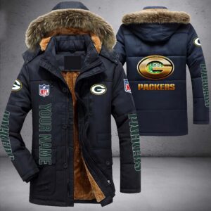 Green Bay Packers NFL Personalized Golden Logo Parka Jacket Fleece Coat Winter