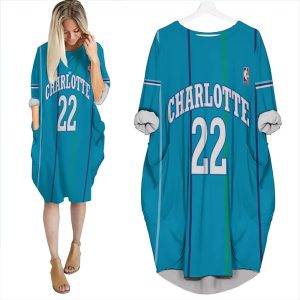 Charlotte Hornets Christian Mccaffrey #22 Nba Great Player Hardwood Classics Teal 2019 Style Gift For Hornets Fans Batwing Pocket Dress PD535