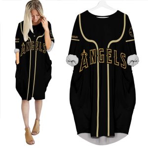 Personalized Los Angeles Angels 00 Anyname 2020 Mlb Golden Black Inspired Style Gift For Los Angeles Angels Fans Batwing Pocket Dress PD2100