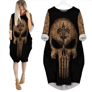 Camouflage Skull New Orleans Saints American Flag 3D Batwing Pocket Dress PD3440