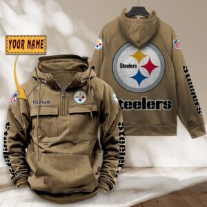 Pittsburgh Steelers NFL Personalized Multi Pocket Quarter Zip Vintage Hoodie WVH1059