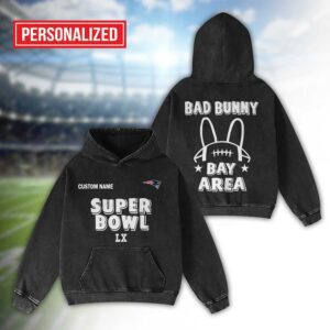 New England Patriots Bad Bunny Super Bowl LX 2026 2D Washed Hoodie