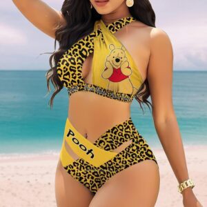 Custom Winnie-the-Pooh Leopard Women’s 2PCS Bikini Swimsuit Crisss Cross Cutout Bathing Suit EBN1073