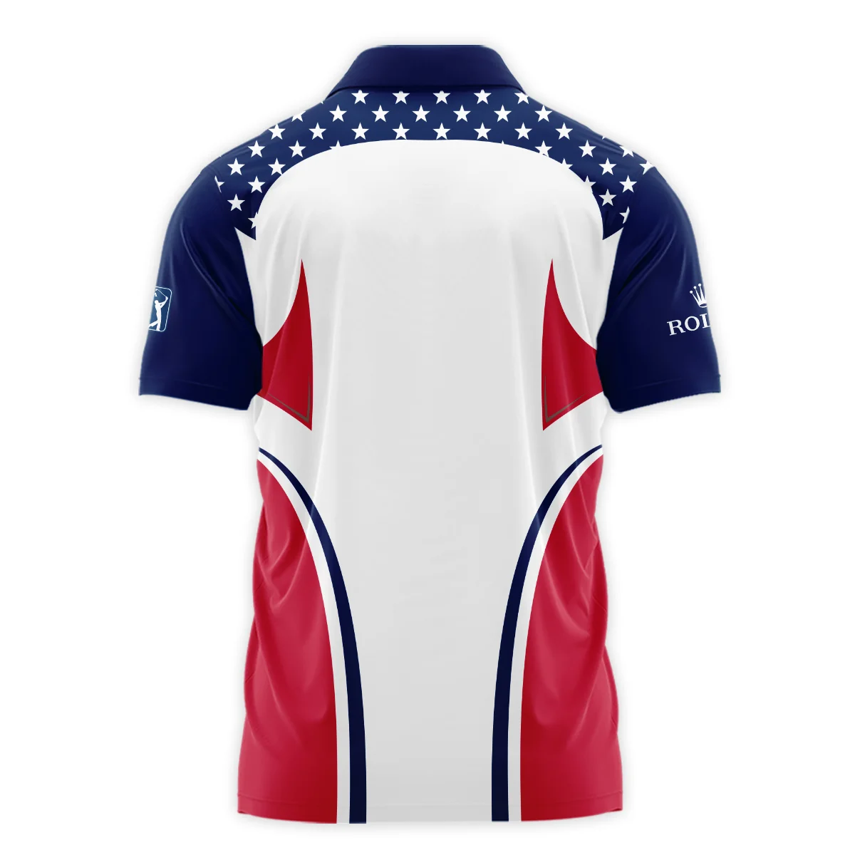 124th U.S. Open Pinehurst Rolex Stars White Dark Blue Red Line Zipper Polo Shirt ZPL1057