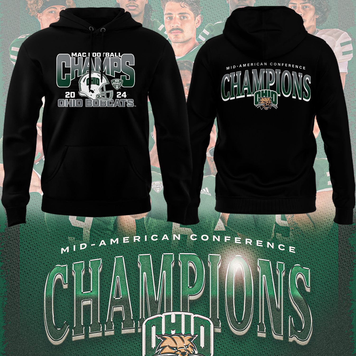2024 Mac Champions Ohio Bobcats Football Black Hoodie BHD6140