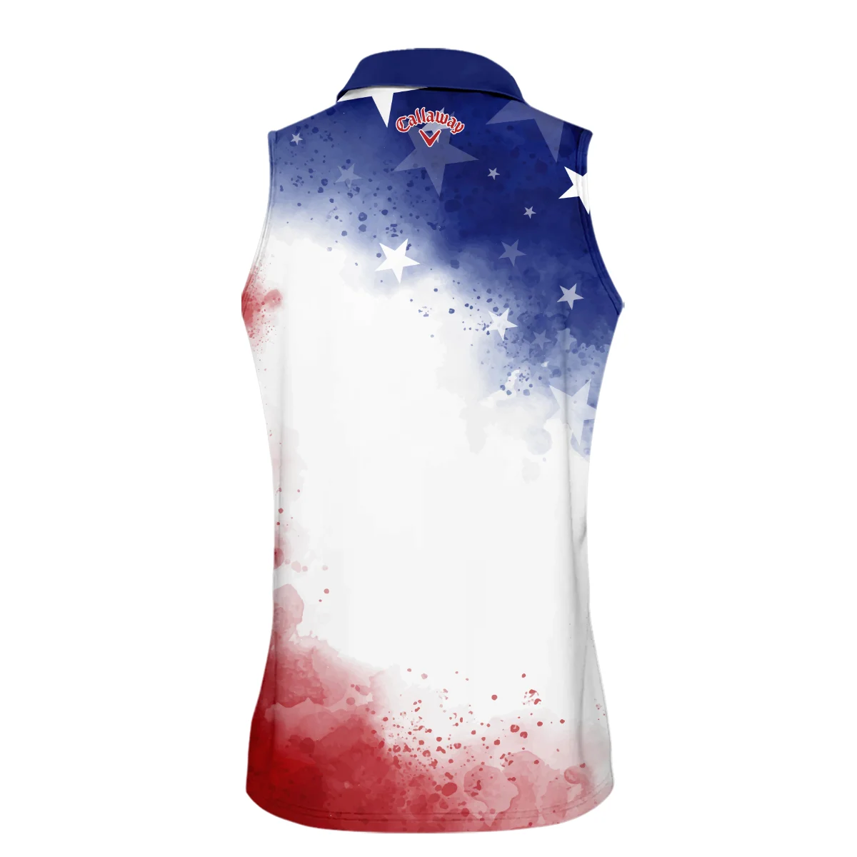 79th U.S. Women’s Open Lancaster Callaway Golf Blue Red Watercolor White Star Sleeveless Polo Shirt