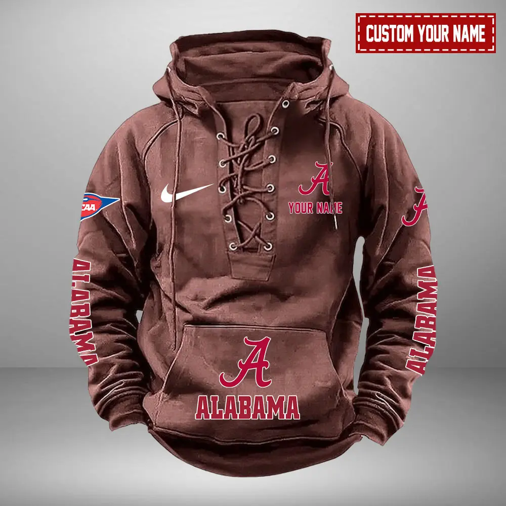 Alabama Crimson Tide NCAA Swoosh Hooded Lace Up Hoodie Vintage Retro Hoodie Custom Name