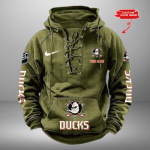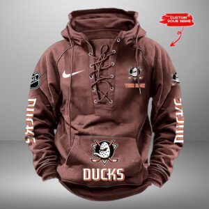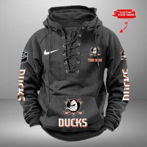 Anaheim Ducks NHL Swoosh Hooded Lace Up Retro Vintage Hoodie Custom Name