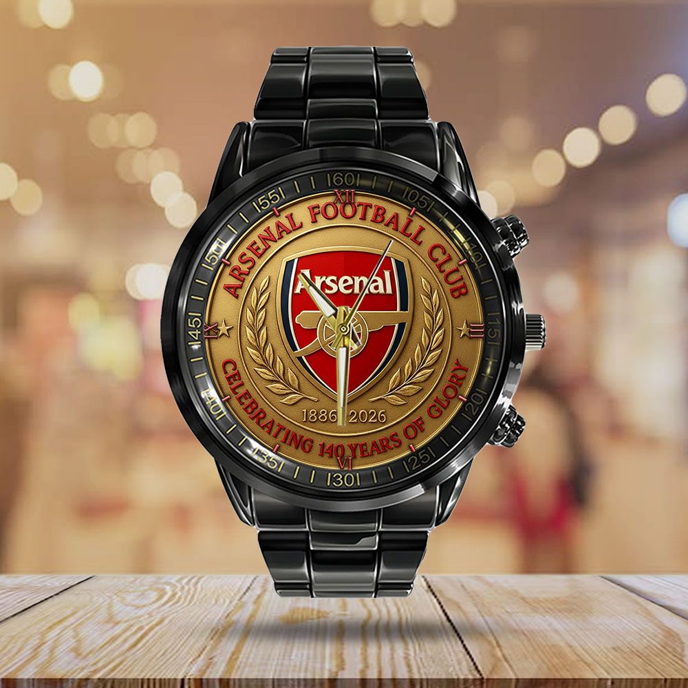 Arsenal FC 140th Anniversary Black Stainless Steel Watch GIFT1055